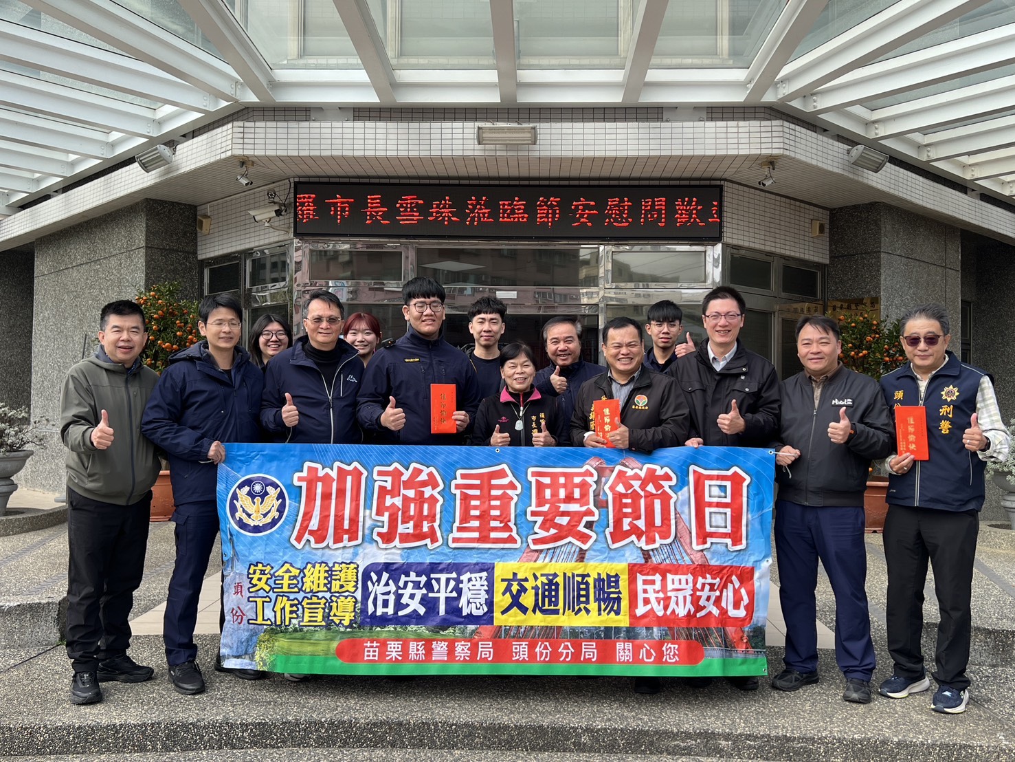 頭份警分局分局長郭譯隆指出,115年加強重要節日安全維護工作自2月9日22時起,至2月23日24時止,為期15天,警方將整合警察、民力及相關行政機關力量,全力落實「治安平穩、交通順暢、民眾安心」三大主軸,營造平安、祥和、快樂的春節假期及優質旅遊環境。